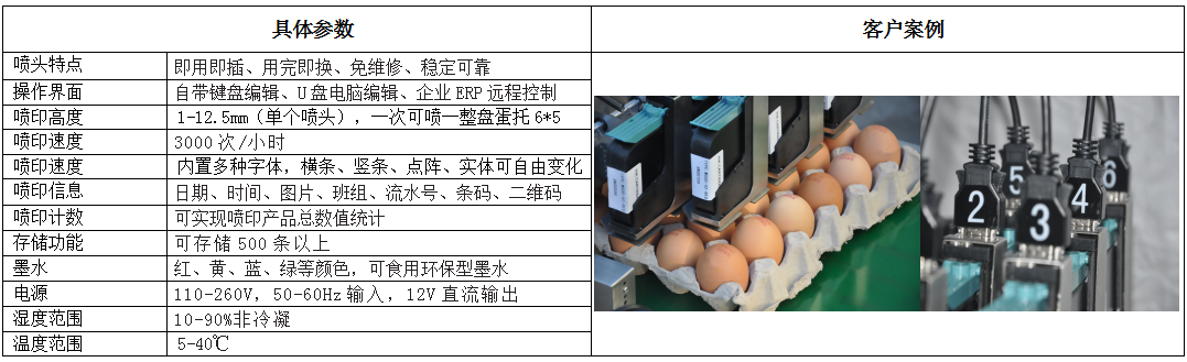 * 一次性完成一整盤蛋托(6*5)噴碼,速度快,字形好,無漏噴